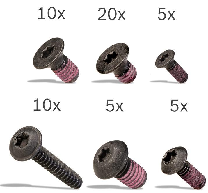 Inkl. 5x Senkkopfschraube M3x8, 10x Senkkopfschraube M5x10, 10x Schraube M4x25, 20x Senkkopfschraube M5x8, 5x Schraube M6x10, 5x Schraube M4x10